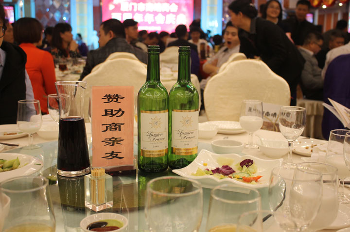 2013年12月15日晚,厦门南靖商会两周年庆典在美丽的白鹭洲畔举行,法国之光作为酒水赞助商全程参与了整个活动。在鼓声奏乐、欢声笑语、领导致辞等一系列活动流程下,现场宾客举着优雅的高脚杯,一起祝福厦门南靖商会越办越好,席间无不赞美法国之光葡萄酒的美味品质和企业形象。
