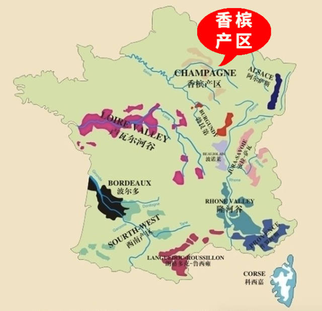 在香槟产区,如翡翠般嫩绿,如稻谷般金黄的葡萄园主要分布在香槟省#府兰斯产区、马恩河谷产区和白丘产区。