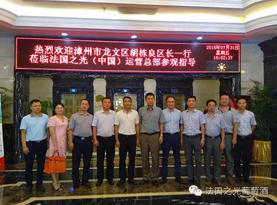 2015年7月31日,福建省漳州市龙文区胡区长莅临法国之光(中国)运营总部。