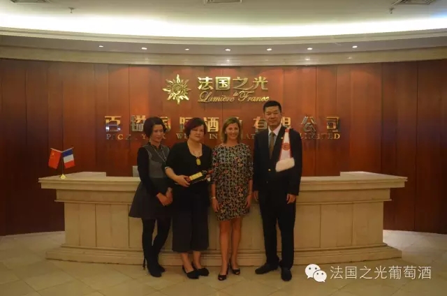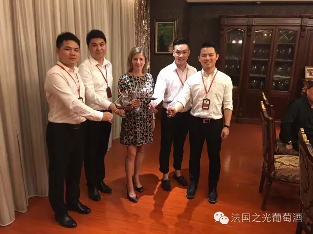 漳州郑总和陈总获董事长与卡特庄主签字版卡特庄园干红并和董事长、法国之光卡特庄园少庄主 Catherine 女士合影