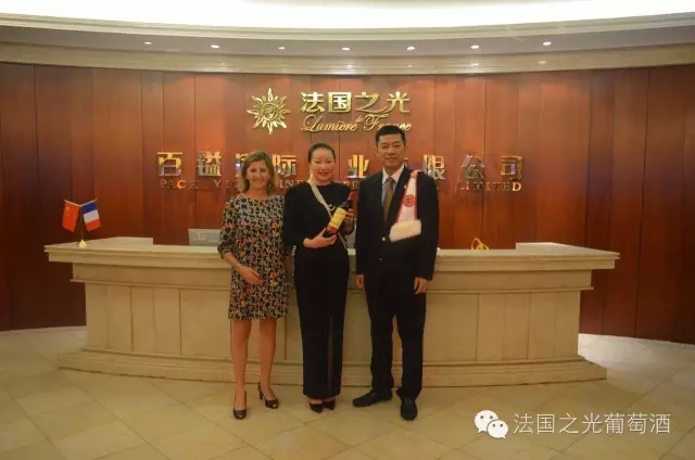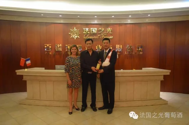长乐李总获董事长与卡特庄主签字版卡特庄园干红并和董事长、法国之光卡特庄园少庄主 Catherine 女士合影
