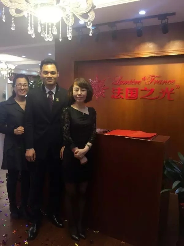 法国之光南宁体验馆吴总、廖总与法国之光销售总监合影