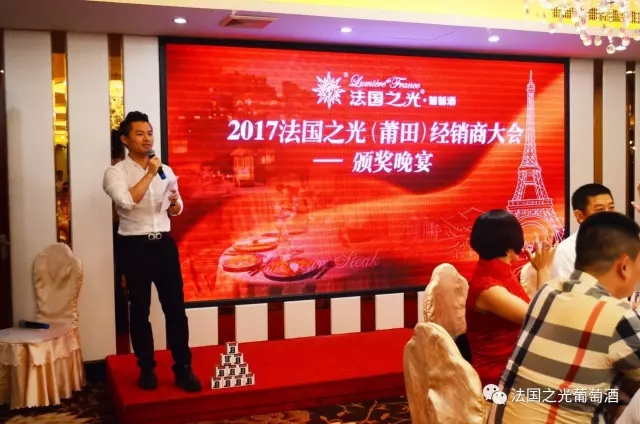 晚宴中,董事长表示,法国之光葡萄酒崇尚健康的饮酒文化,也坚持“全产业链品质控制+体验式服务”的发展理念,只要一直坚持下去,相信莆田地区的所有经销商明天会更好。
