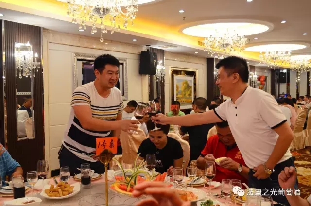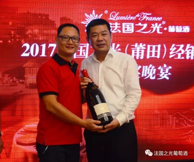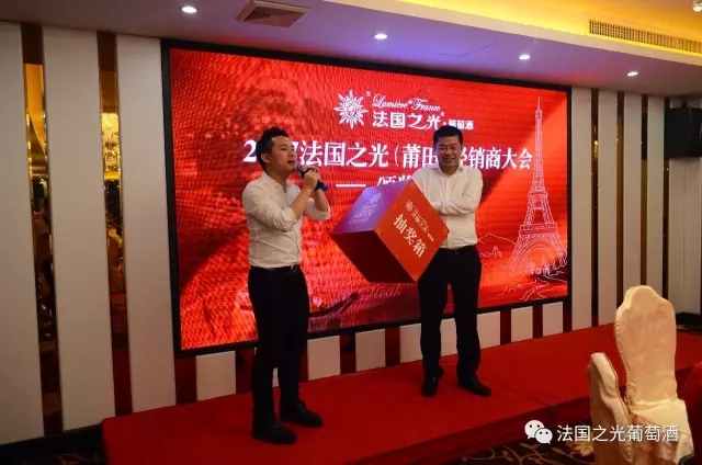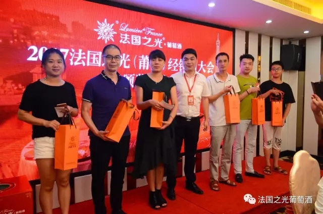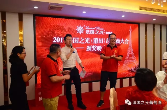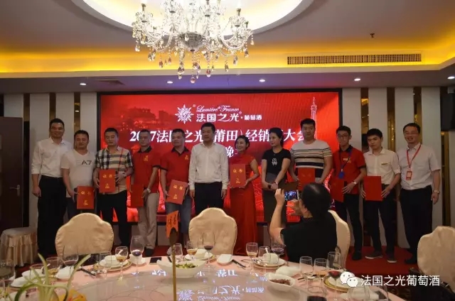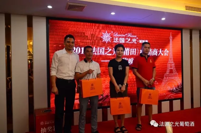 会议结束后,集团总部还为所有莆田经销商家人们精心准备了一场欢快的颁奖晚宴。大家一边品着法国之光自己的酒,一边交流经营营销理念,一边领着总部为大家准备的各种礼物,别有一番风味。