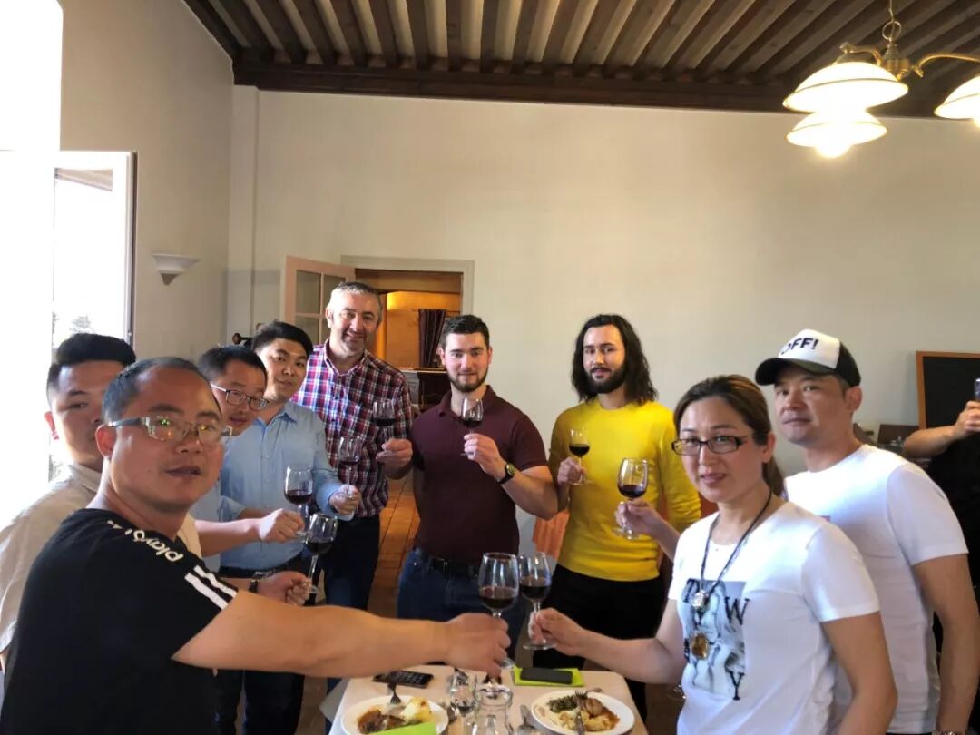 参观完庄园,劳伦特带领我们参观了乐好干红生产车间的生产工序,从上瓶、洗瓶、装液,加塞、封口、贴标、装箱、打拖,装车均在此完成,大家对每一道流程都充满好奇和迫切想要更加深入地了解。