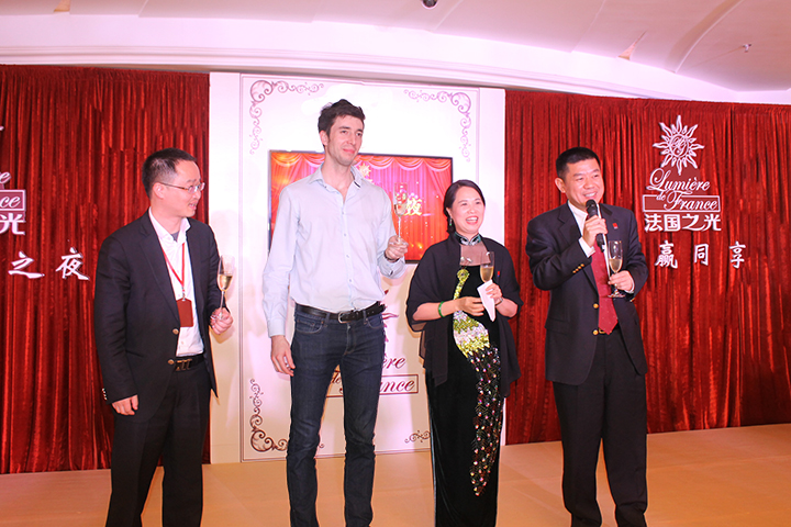 4月24日晚,法国之光中国运营总部在厦门湖滨南路立信广场隆重的举行了颁奖晚会,出席本次颁奖晚会的颁奖嘉宾有:法国之光董事长王总,总裁吴总,法国驻广州领事馆俞国先生。