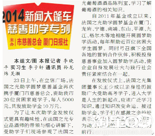 厦门日报在今日的报纸中,对本次法国之光基金发放会进行了报道。