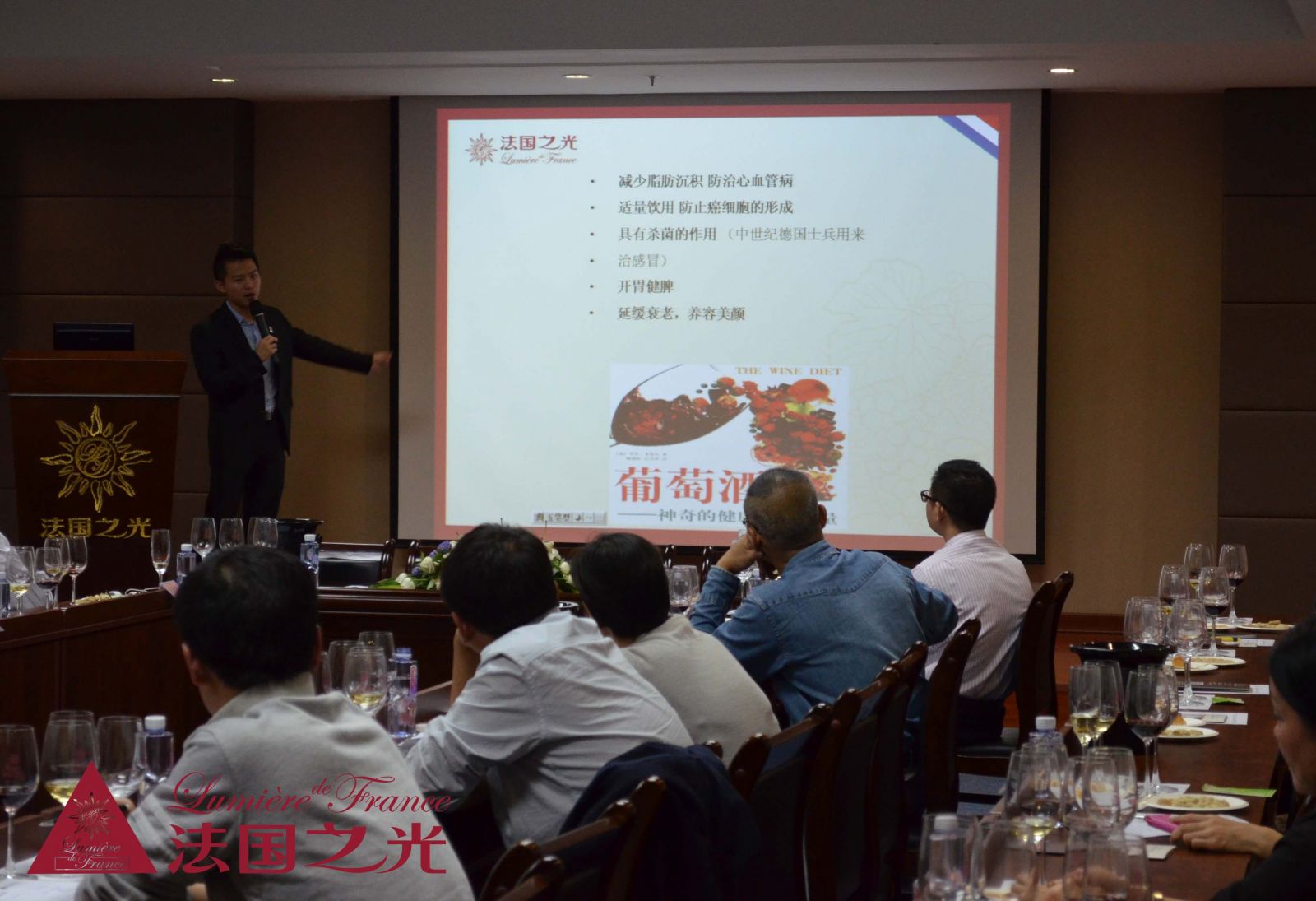2014年11月9日,法国之光葡萄酒联合安发国际在法国之光品牌运营总部举办专场品酒会暨葡萄酒座谈会。此次法国之光葡萄酒与安发国际携手邀请众多国际医学界的泰山北斗做客法国之光,不仅让各位嘉宾领略法国之光对葡萄酒文化的转播,更是印证葡萄酒与健康的密不可分。