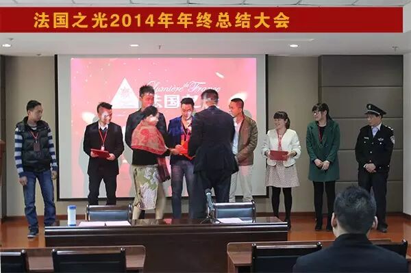 2015年2月14日,在法国之光品牌运营总部的会议室举行了法国之光2014年终总结暨表彰大会。法国之光董事长、总裁、各位经理和全体员工都参加了此次会议。