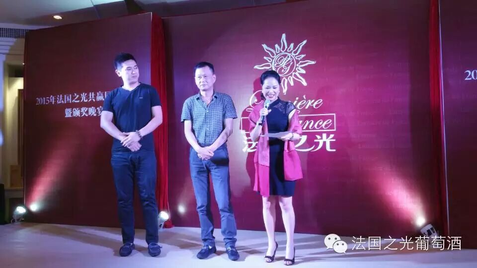 在晚宴开始之前,法国之光对过去一年里奋斗在市场前线的伙伴们颁奖,奖项设有:“企业团购奖”、“渠道开拓奖”、“体验奖”、“品牌贡献奖”以及“绩效优异奖”,而四川成都、福建晋江、福建莆田、河南开封、广西南宁以及福建长乐分别获得以上奖项。