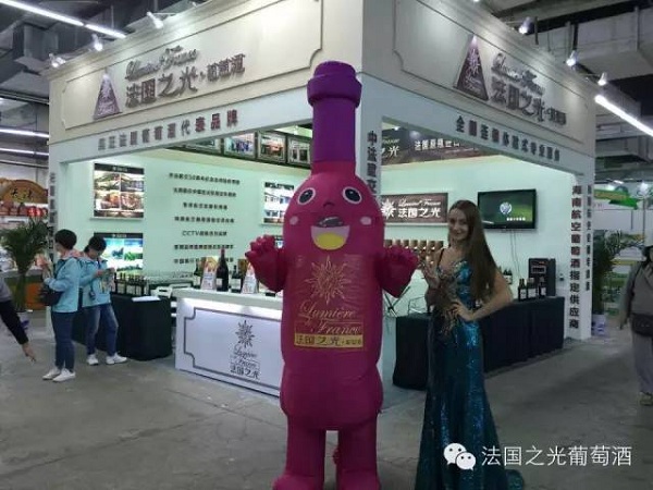 据了解,为了支持法国之光沈阳品牌运营中心参加好本次食博会,法国之光总部不仅为沈阳运营中心设计好了展会现场的活动物料和展示道具,而且还派出了法国之光总部市场部经理吴经理亲临现场协助沈阳运营中心做好本次展会。不得不提的还有,现场的造型独特、新颖的法国之光吉祥物和含情脉脉的法国女郎吸引了大量葡萄酒爱好者现场驻足参观法国之光展厅。